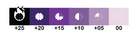 El sector de Maná tiene 6 casilleros (+25 a 0). El indicador de Maná inicia la partida en el casillero +25 y disminuye en 5 (un casillero hacia la derecha) en las siguientes ocasiones: